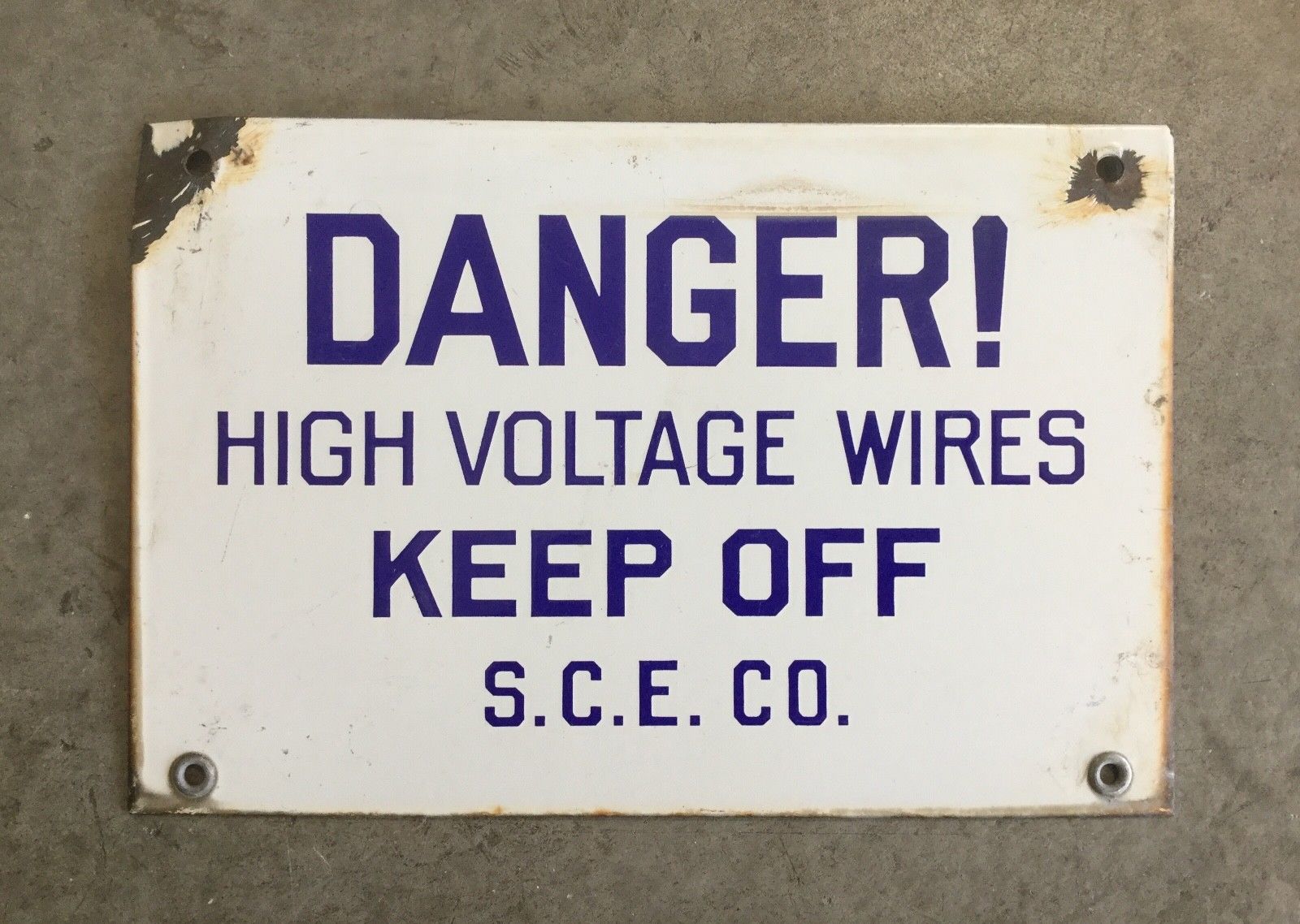 Title (ebay affiliate link): VINTAGE PORCELAIN Sign DANGER High Voltage KEEP OFF Southern California Edison