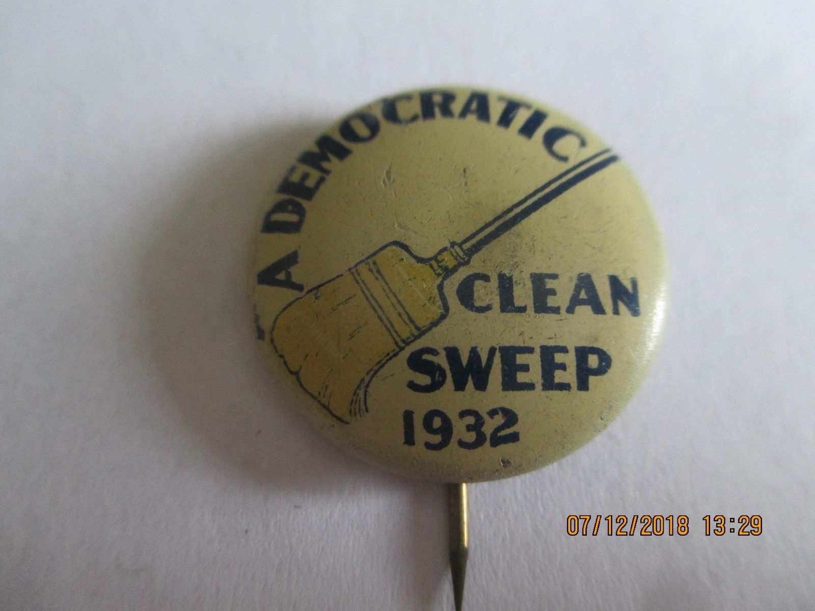 Title (ebay affiliate link): 1932 7/8" Litho Button Pin FranklIn Roosevelt "Clean Sweep" FDR227