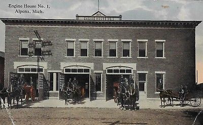 Antique / Vintage 1900''s Postcard Engine House FireHouse No. 1 Alpena MI 1911