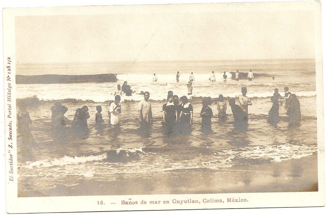 Banos de mar en Cuyutlan bath bathing swimming Colima photo rppc Mexico Postcard