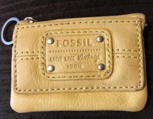 Title (ebay affiliate link): NWOT Fossil vintage key ring change purse....pale Yellow leather....4" x 3"