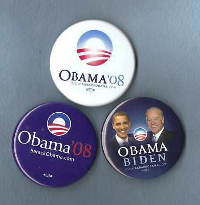 Title (ebay affiliate link): 3- Obama Campaign Buttons Pins pinbacks -Originals 2008