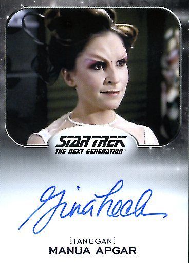 Title (ebay affiliate link): Star Trek 50th Anniversary ALIENS AUTOGRAPH card GINA HECHT as MANUA APGAR