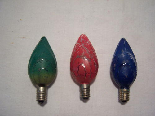 Title (ebay affiliate link): 3 Vintage Working C6 Christmas Flame Light Bulbs Red Blue Green 15 Volt Japan