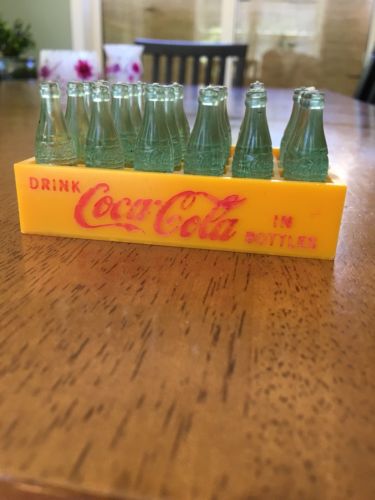 Title (ebay affiliate link): Vintage Miniature Coca Cola Green Mini Coke Bottles 24 in a Yellow Plastic case