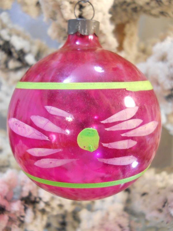 Title (ebay affiliate link): 1940s CORNING Unsilvered War Era HOT PINK ~LIME GREEN Hand-Painted Xmas Ornament