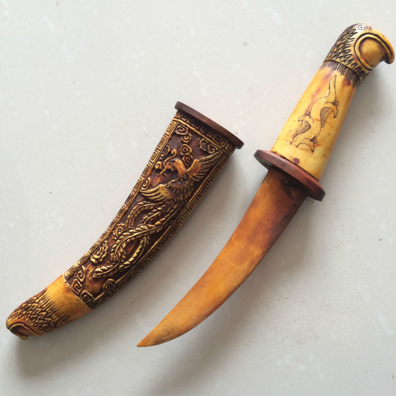 Title (ebay affiliate link): Rare China bone carve ancient dragon eagle dagger stiletto dirk knife