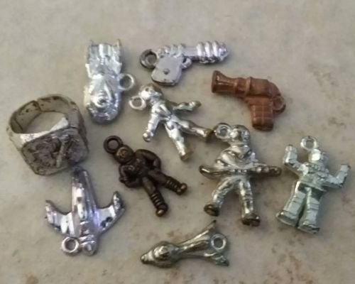 Vintage plastic SPACEMAN SPACE SHIP RAY GUN gumball charms prizes jewelry
