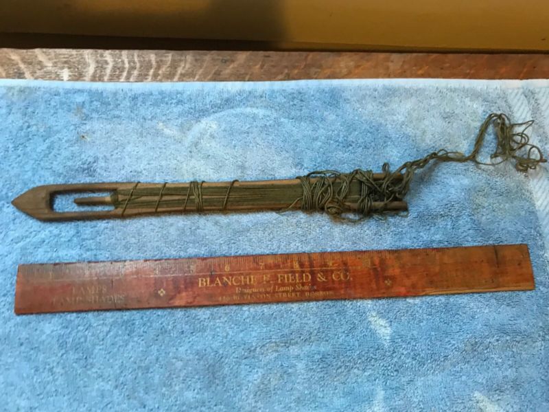 Title (ebay affiliate link): Early~Fishing-Net "Needle"~New England~Wooden, Hand-Carved Spool + Original Line