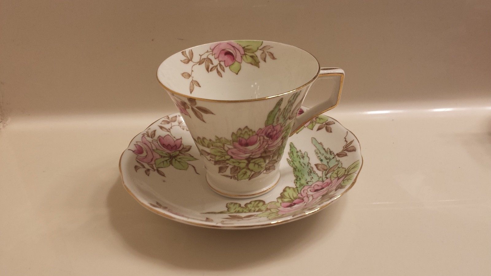 Radfords Bone China Tea Cup & Saucer, Made in England, Rose Pattern