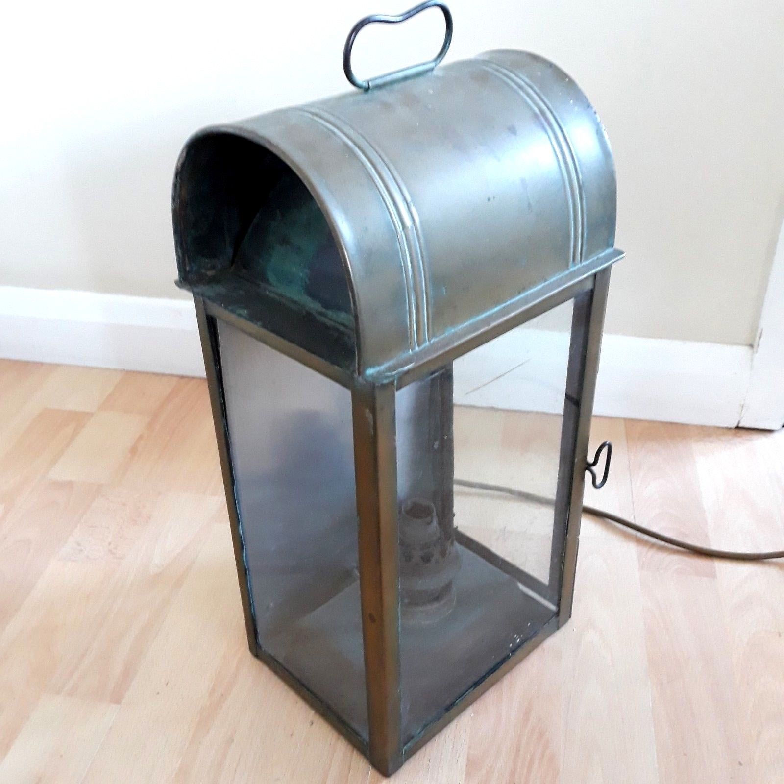 Title (ebay affiliate link): LARGE ANTIQUE BRASS OIL STORM LAMP (converted to electric)