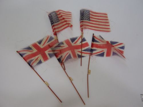 Title (ebay affiliate link): 5 * VINTAGE US UNION JACK SILK FLAGS * MADE IN JAPAN 5" PATRIOTIC CHRISTMAS