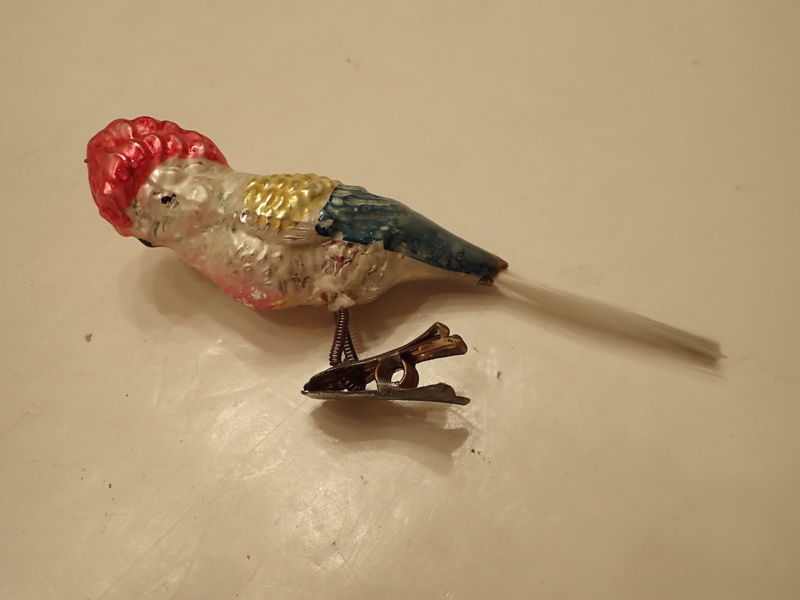 Title (ebay affiliate link): Vtg German Germany Mercury Glass Painted Glass Clip on Bird Cocktail Cockatoo