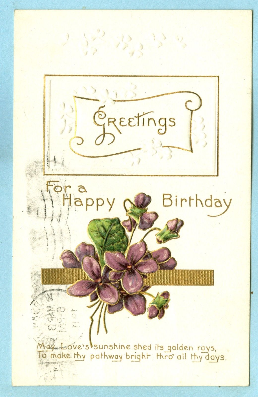 Title (ebay affiliate link): Embossed, "Greetings For a Happy Birthday", Short Poem, Violets...