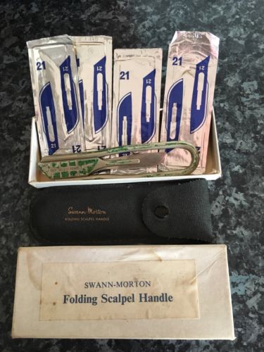 Title (ebay affiliate link): Vintage folding scalpel handle. Swann Morton 1950s IN CASE. With box