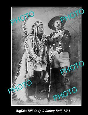 OLD LARGE HISTORIC PHOTO OF BUFFALO BILL CODY & SITTING BULL 1885, NATIVE INDIAN