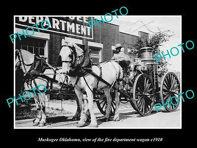 OLD LARGE HISTORIC PHOTO OF MUSKOGEE OKLAHOMA, THE FIRE DEPARTMENT WAGON c1910