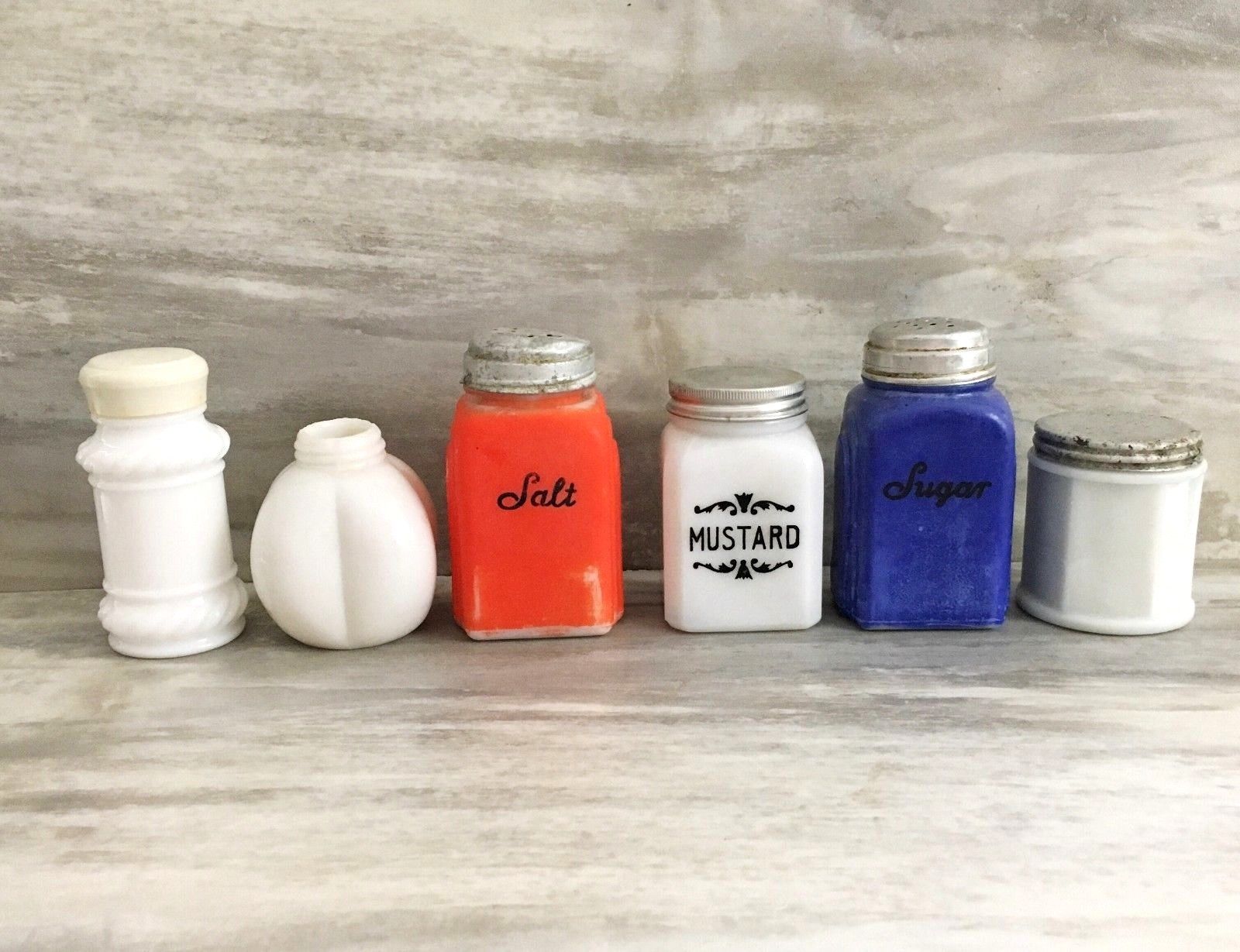 Title (ebay affiliate link): Lot of 6 Milkglass Bottles and Shakers McKee Ponds Cold Cream Jar Assorted
