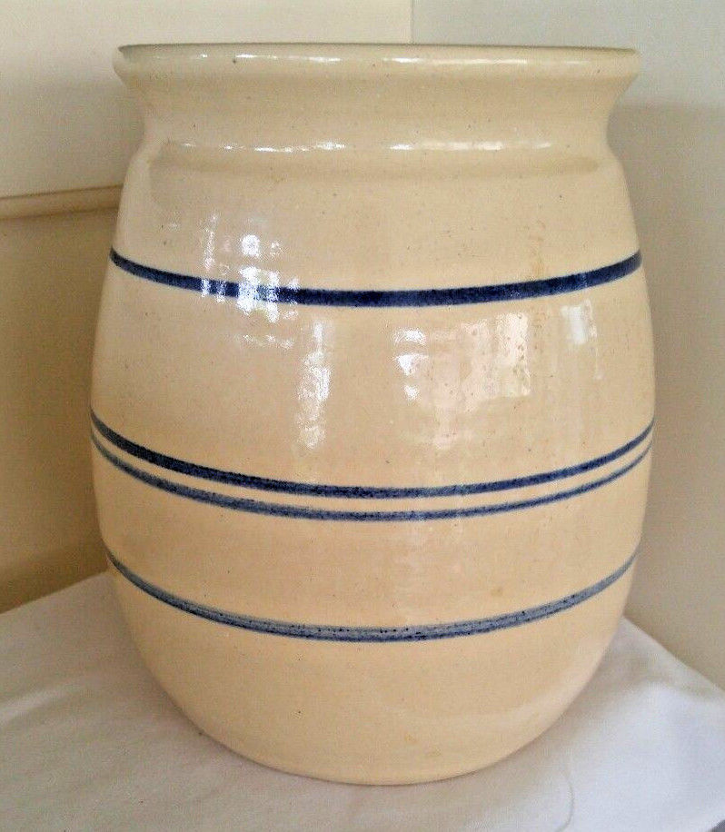 VINTAGE MARSHALL POTTERY BLUE & CREAM LARGER CROCK