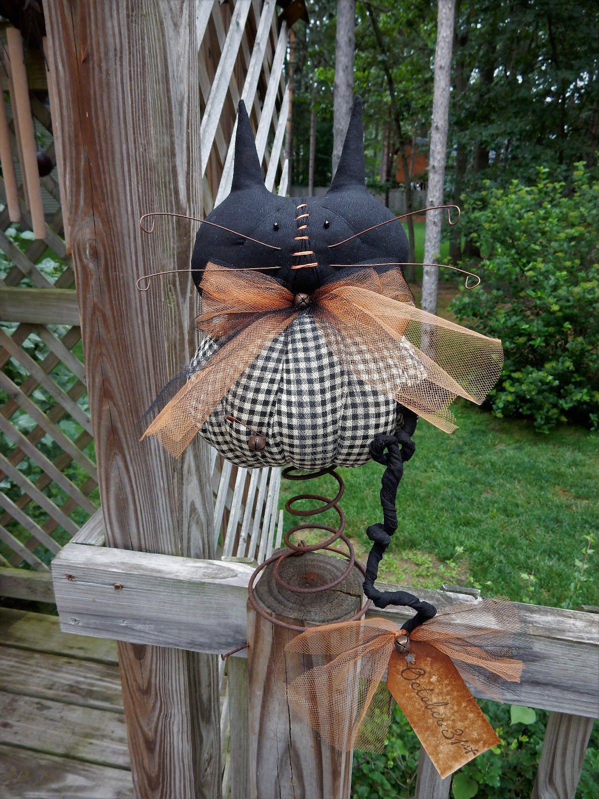 Title (ebay affiliate link): FoLk Art PrimiTive Fall HALLOWEEN Black CAT PUMPKIN DOLL RusTY Spring DecoraTion