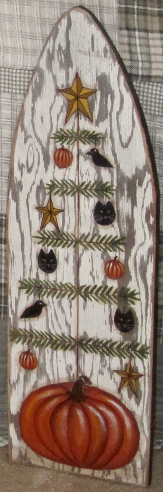 *~*PRIMITIVE*~* HP FOLK ART PRIM FALL STICK TREE * CAT * PUMPKIN *~* STRETCHER