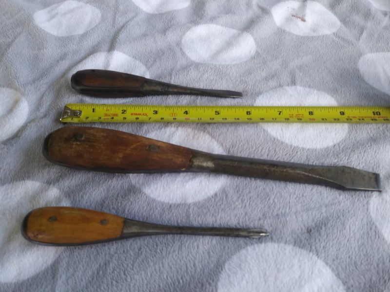 Title (ebay affiliate link): Vintage Set of 3 Wooden Handle Screwdrivers