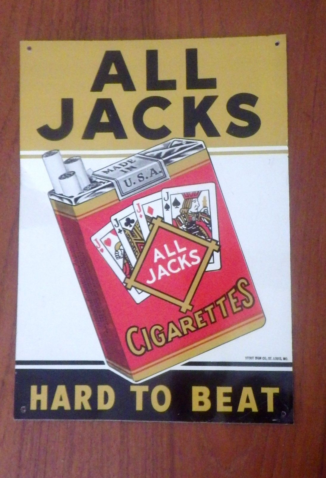 Vintage ALL JACKS Cigarettes Advertising Sign Tin Nice Strong Colors