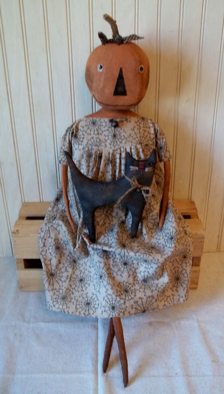 Title (ebay affiliate link): Primitive Grungy Big Pumpkin Girl Halloween Doll & Her Black Kitty Cat
