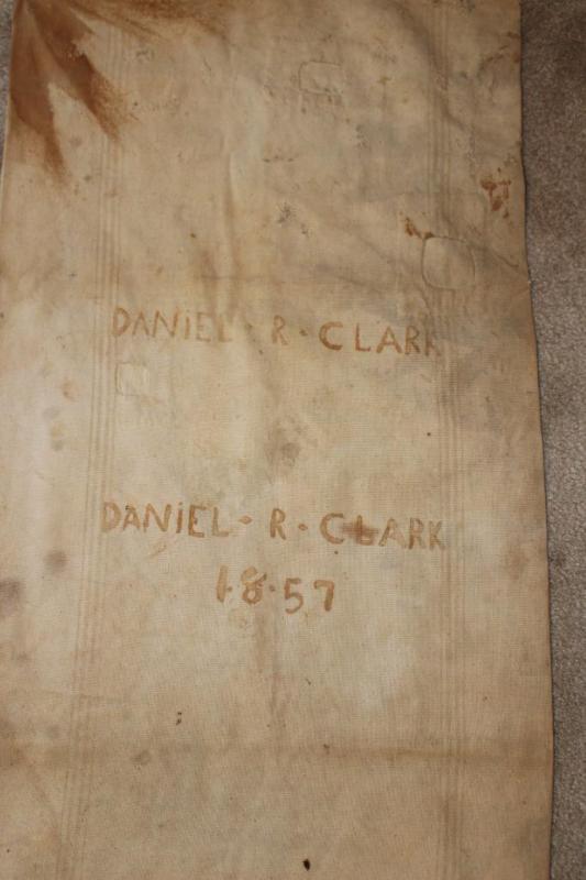 Title (ebay affiliate link): Antique Primitive Long Grain Sack Homespun Signed 1857 Daniel R. Clark