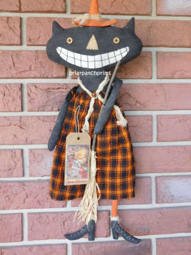 Title (ebay affiliate link): Primitive 22" Halloween Cat Witch Doll w her Broom Kitty Fall Decoration Folk