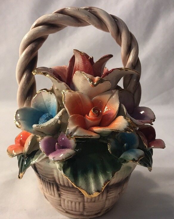 Title (ebay affiliate link): VINTAGE CAPODIMONTE STYLE BASKET FLOWERS HAVE GOLD HIGHLIGHTS