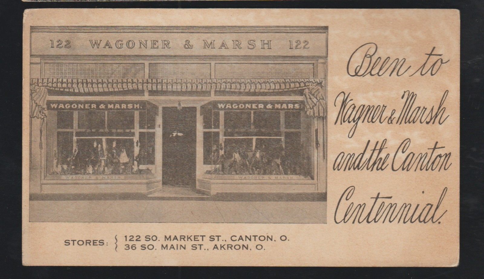 Title (ebay affiliate link): Canton/ Akron, Ohio/ Wagner & Marsh Store/ Centennial / non-linen postcard