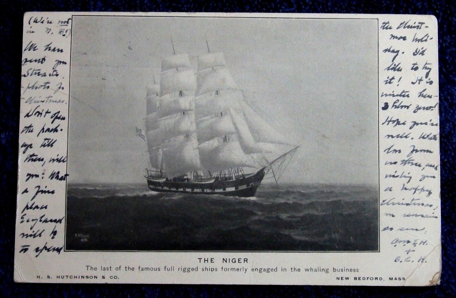 1906 NEW BEDFORD MASS SOUVENIR POSTCARD THE NIGER SENT TO DYSERT HOTEL