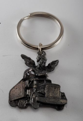 VINTAGE GUARDIAN ANGEL TRUCKER PEWTER METAL KEY CHAIN KEY RING FOB NWOT