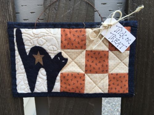 Title (ebay affiliate link): HALLOWEEN CAT QUILT - Primitive Wall Hanger - Country Decor - Handmade