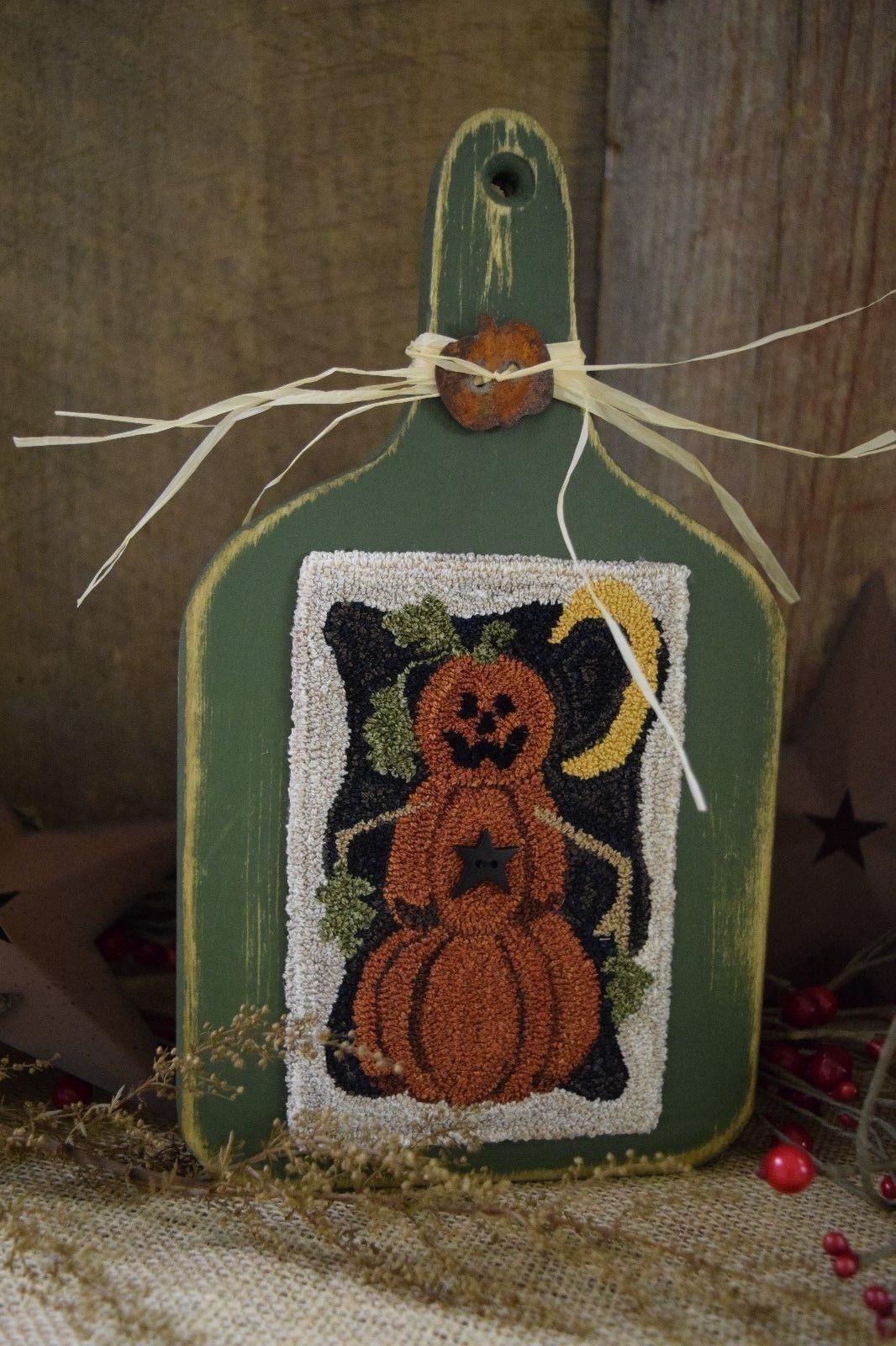 Title (ebay affiliate link): Primitive Punch Needle Folkart Autumn Pumpkin Jack Stack Hornbook 9.5"H
