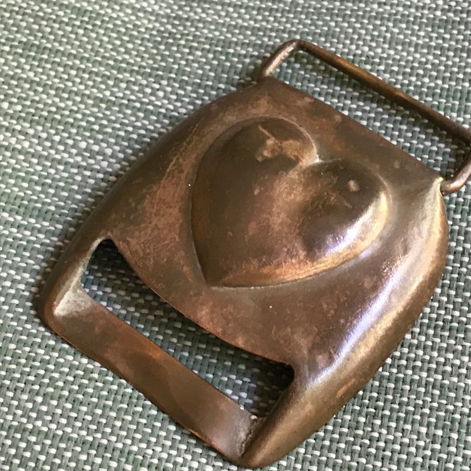 Title (ebay affiliate link): Civil War Era Brass Horse Tackle Bedroll Heart Buckle Cover 5.5mm wide Antique