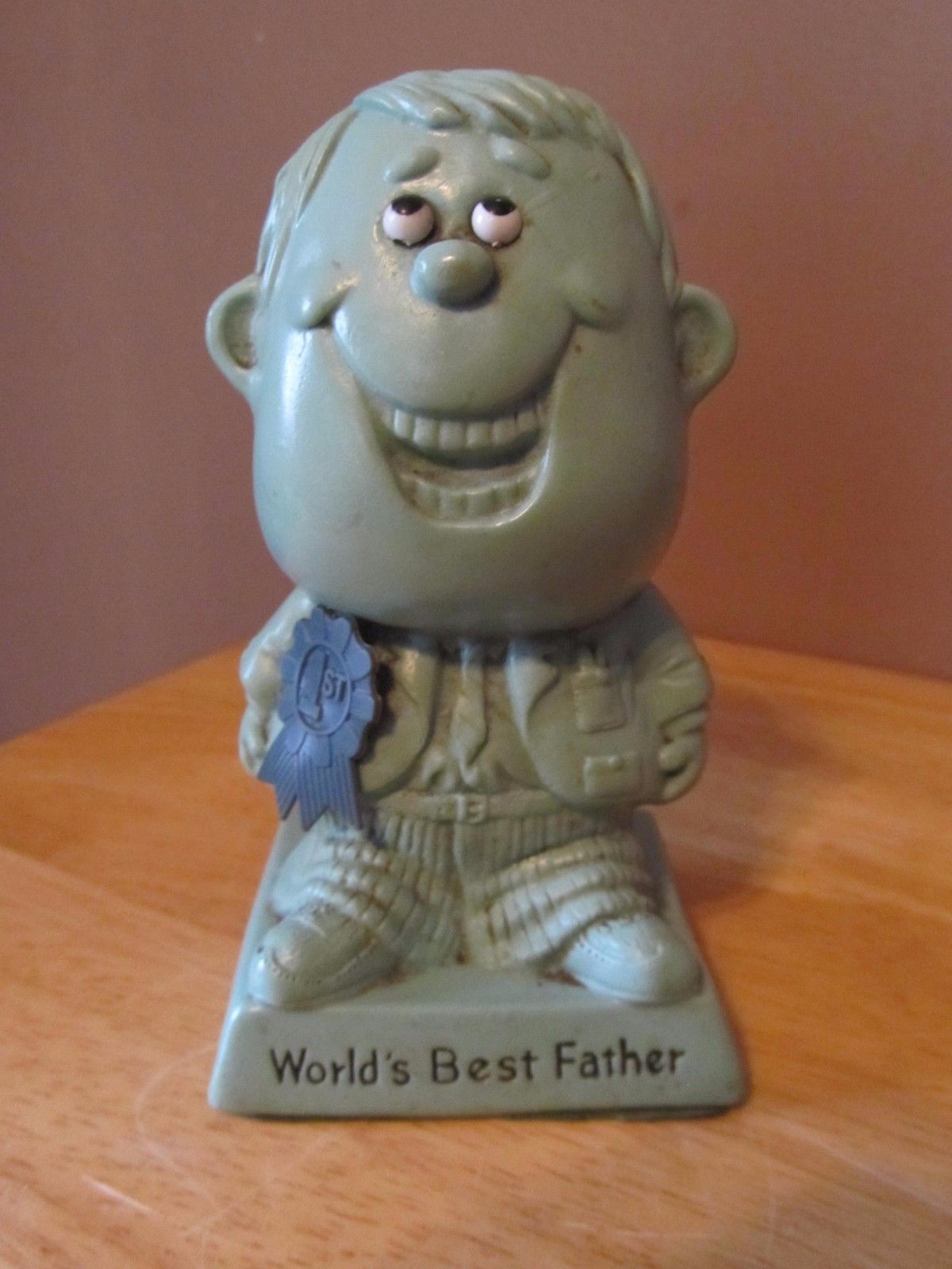 Vintage R & W Berries "World''s Best Father" 5.5" Blue Figurine~1970~Good Cond.