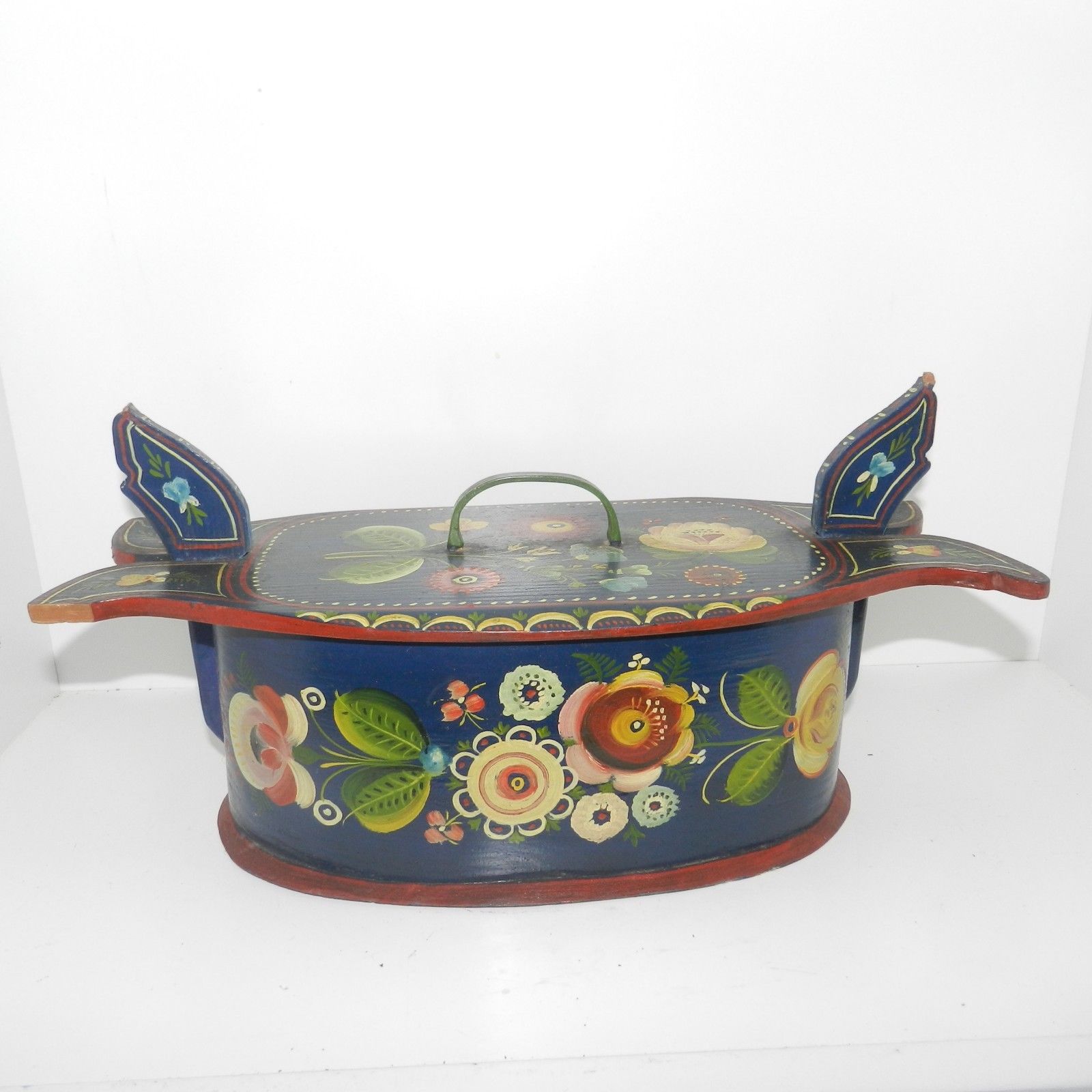Title (ebay affiliate link): VTG NORWEGIAN TINE WOOD BOX HP FLORAL ROSEMALING FOLK ART PRIMITIVE TOLEWARE
