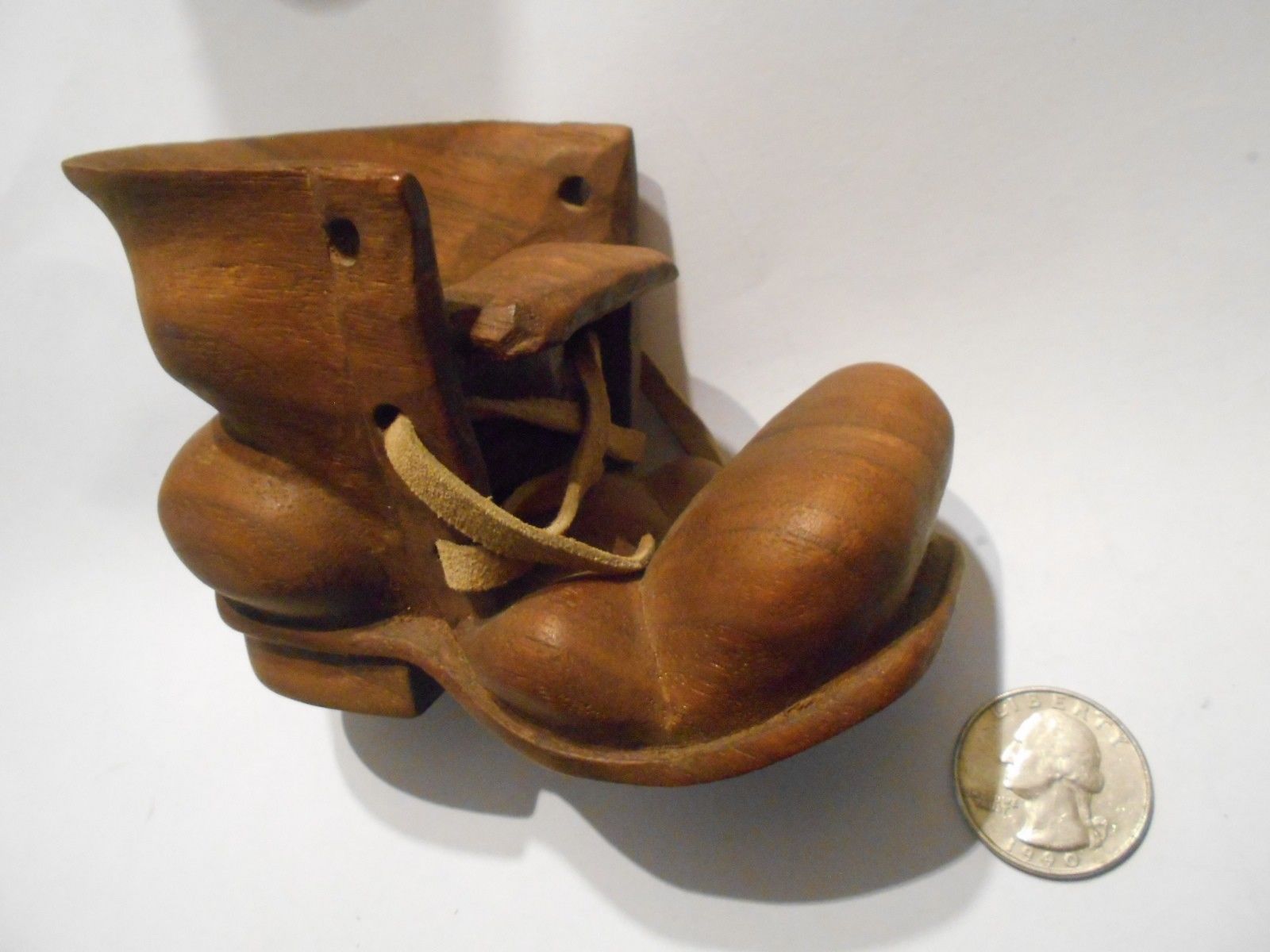 Title (ebay affiliate link): Hand Carved - Folk Art - Wooden Boot w/leather lace - Candlestick holder