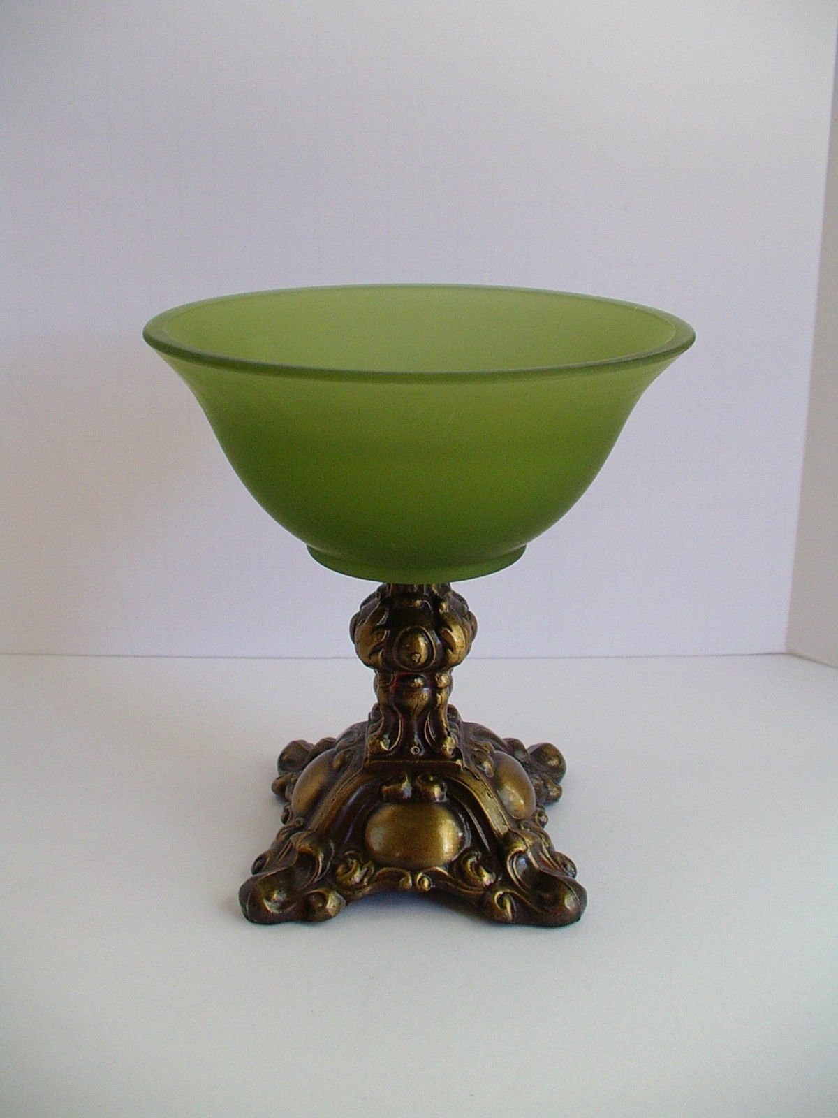 Title (ebay affiliate link): Vintage Green Satin/Frosted Glass Footed Compote/Candy Dish with Brass Base