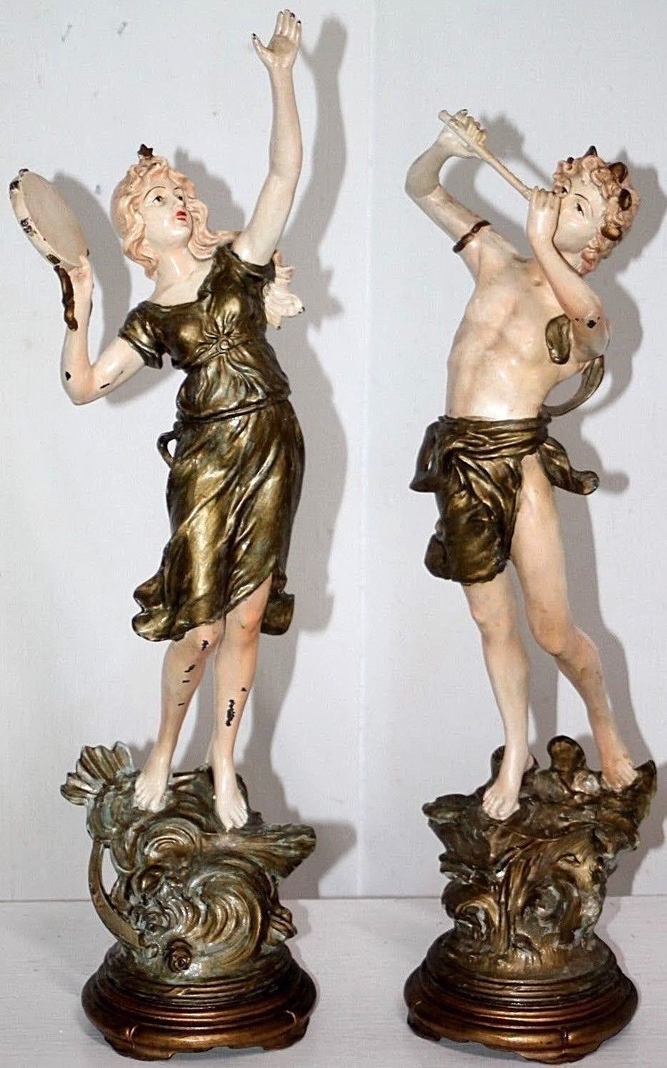 Title (ebay affiliate link): ANTIQUE SET OF XL ENAMELED SPELTER MYTHICAL FIGURES / CLOCK GARNITURES / STATUES