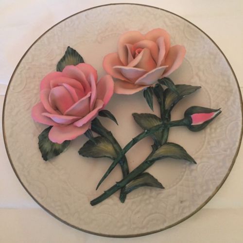 Title (ebay affiliate link): THE ROSES OF CAPODIMONTE PLATE Franklin Mint Ltd Numbered Ed Ivory Pink Bisque