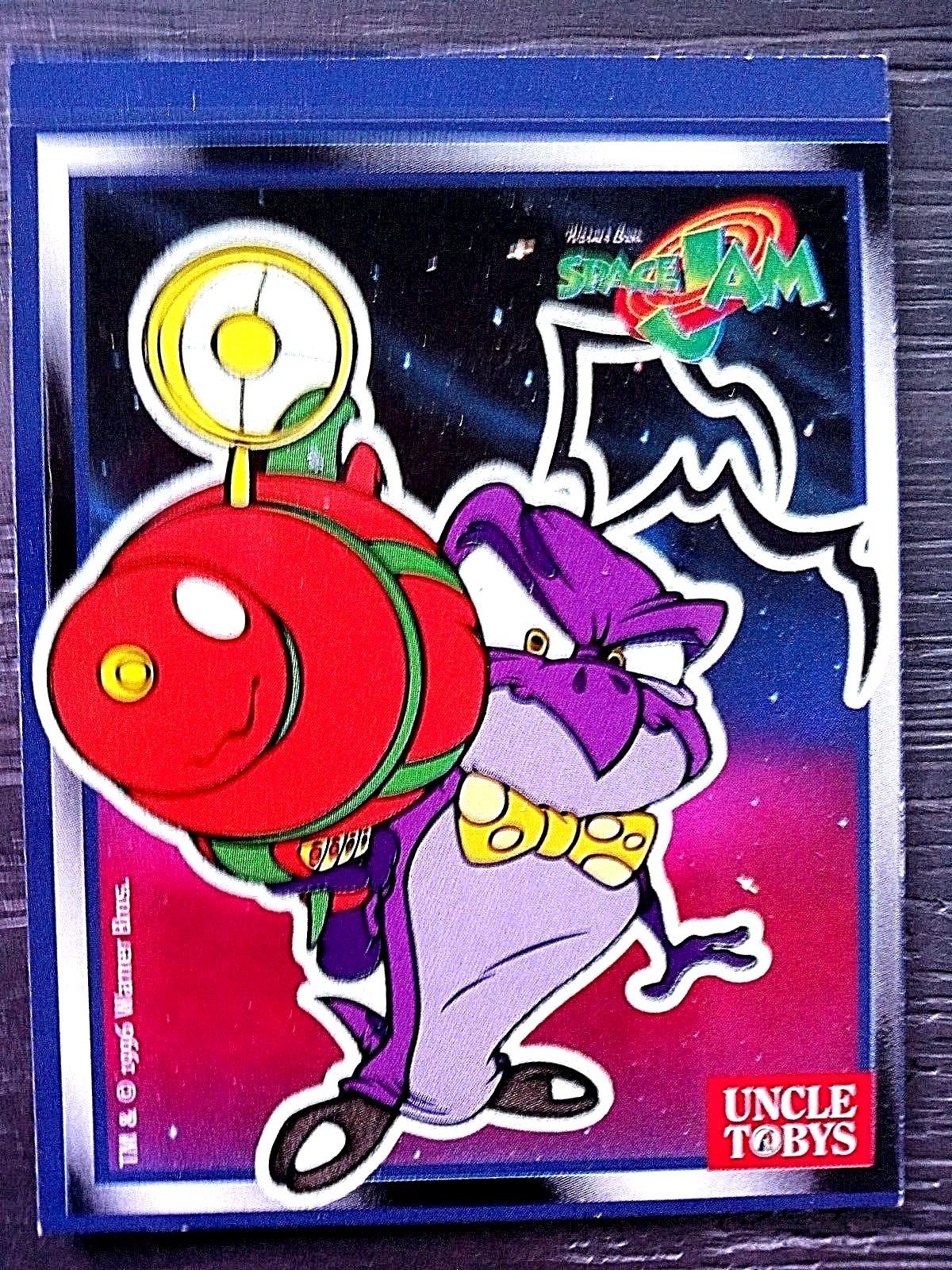 Title (ebay affiliate link): 1996 UNCLE TOBYS SPACE JAM GLOW IN THE DARK STICKER - UNUSED - BUPKUS