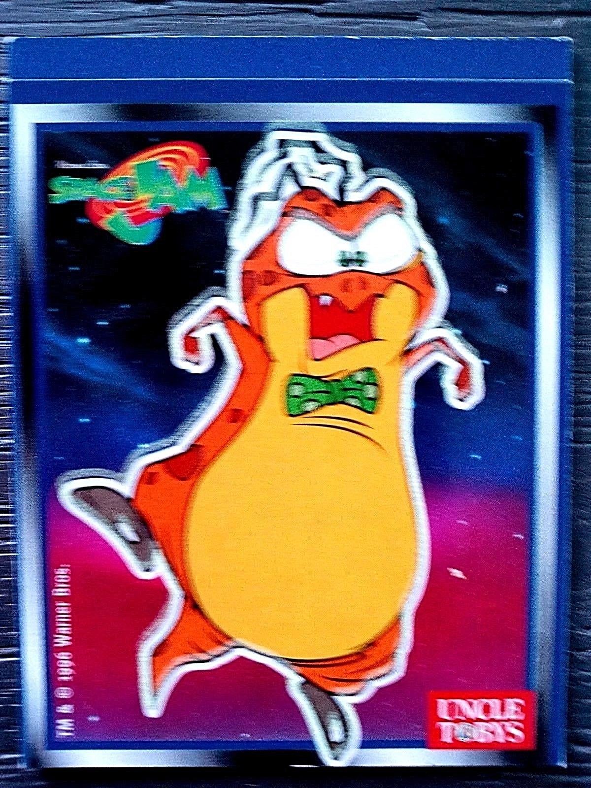 Title (ebay affiliate link): 1996 UNCLE TOBYS SPACE JAM GLOW IN THE DARK STICKER - UNUSED - POUND