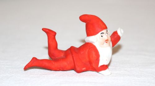 Title (ebay affiliate link): Miniature Bisque Elf, waving as he slides in Snow. Early 1920s. German Figure