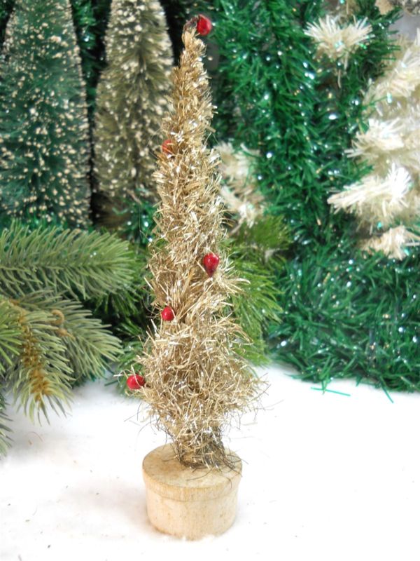 Title (ebay affiliate link): 1930s Antique 9" Metal Tinsel Berries GERMANY Bottle Brush XMAS TREE ~Wood Base
