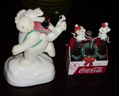 Title (ebay affiliate link): 2 Ice Skating Bears Mice Coca Cola Christmas Ornaments