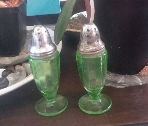 Title (ebay affiliate link): Vintage Green Depression Glass Salt & Pepper Shaker Set