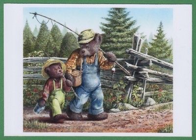 Title (ebay affiliate link): on fishing, big and small Teddy bear, Russian modern postcard